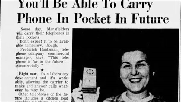 "ستكون قادرًا على حمل الهاتف في الجيب في المستقبل"، بهذا العنوان المثير للجدل وبصورة السيدة "جين كونراد" الممثل التجاري لشركة مانسفيلد تلفون، وهي تحمل في يدها ما يشبه الهاتف المحمول الحديث ، نشرت صحيفة مانسفيلد نيوز الأمريكية مقالا في 18 إبريل عام 1963، يتوقع شكل الهواتف المحمولة الحديثة التي نحملها في اليوم القادرة على إجراء مكالمات الفيديو والبث المباشر.