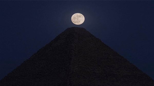 مثل التاج على رأس الملوك، جلس البدر مكتمل التمام، على رأس هرم مصر، رمز حضارتها خوفو، وكأنها بشارة قمر يضيء مستقبل الوطن.