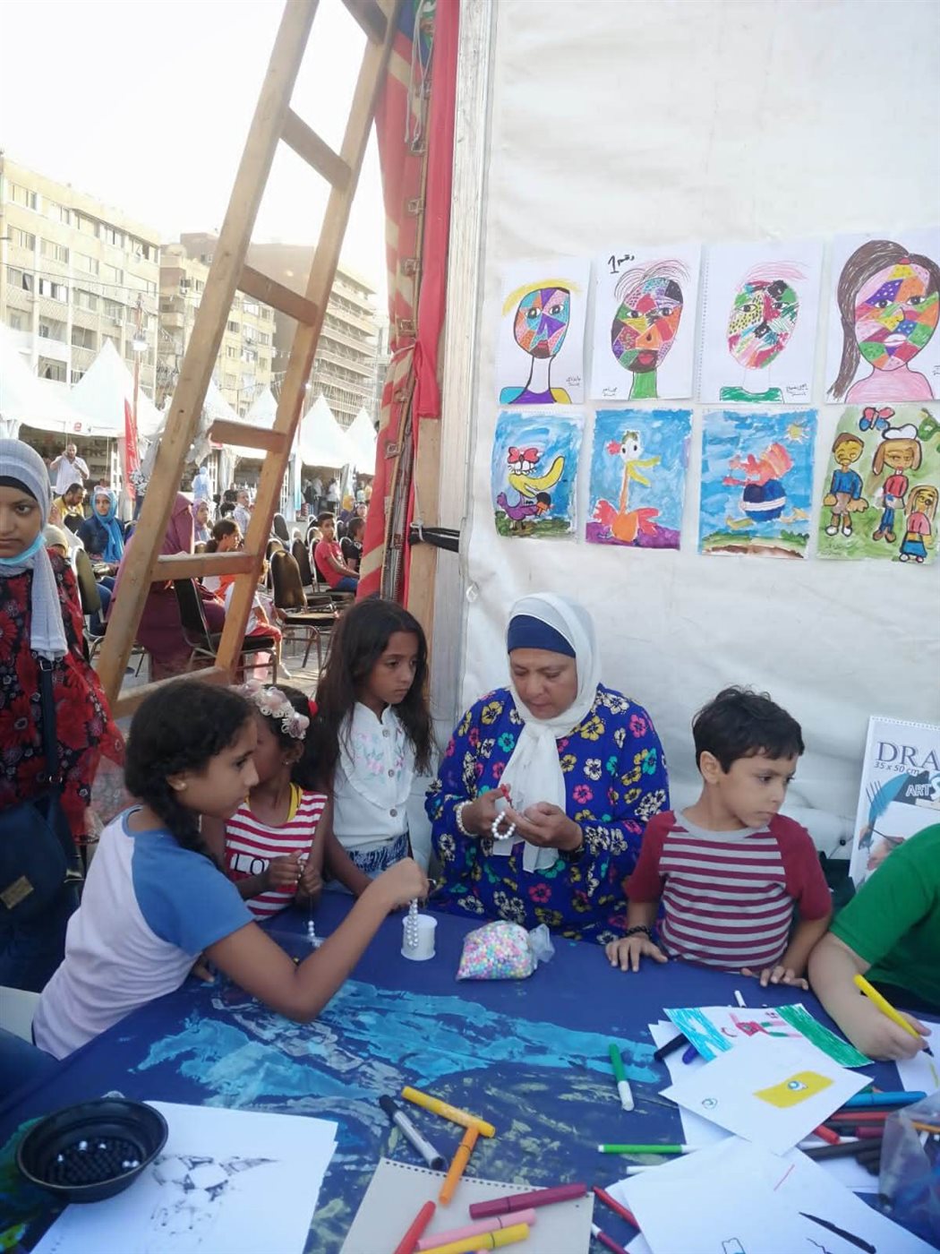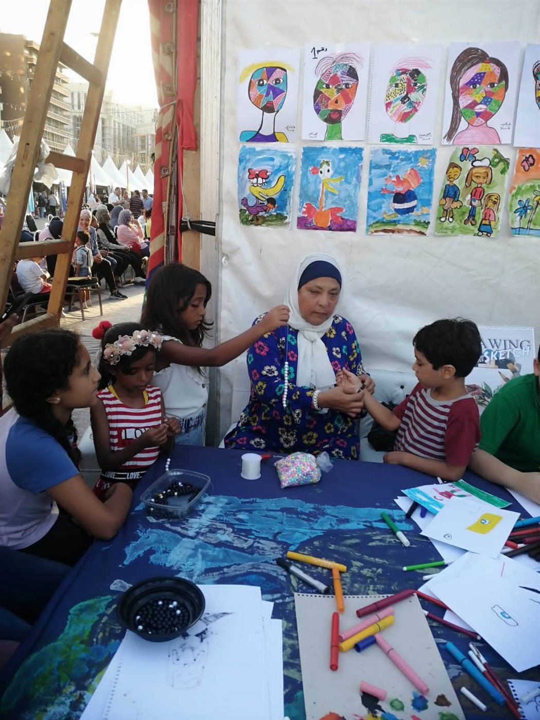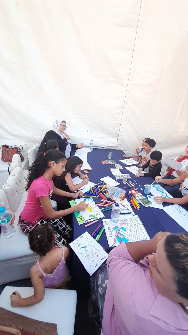 وضمن الفعاليات التي قدمت بحضور د. جيهان حسن مدير عام ثقافة الطفل، نفذت الفنانة غادة عبد النبي ورشة فنون تشكيلية، مستوحاة من الفن الشعبي المصري وموتيفاته وعناصره المشهورة، تم خلاله الحديث مع الأطفال عن المعتقد الشعبي ودلالة كل عنصر منها مثل العين والكف للحذر من الحسد، السمكه والحمام النخلة للحث على الرزق، وحدوة الحصان وغيرها.