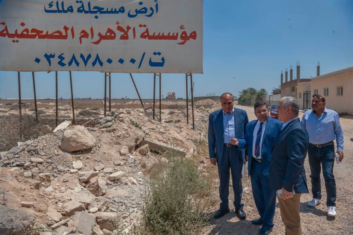 وبدأت الجولة بتفقد أرض الأهرام بطريق مصر الإسكندرية الصحراوي وموقع وكالة الأهرام وورش التنفيذ بالعامرية وموقع مؤسسة الجمهورية بالعامرية وموقع مؤسسة الأخبار بمنطقة العجمي.