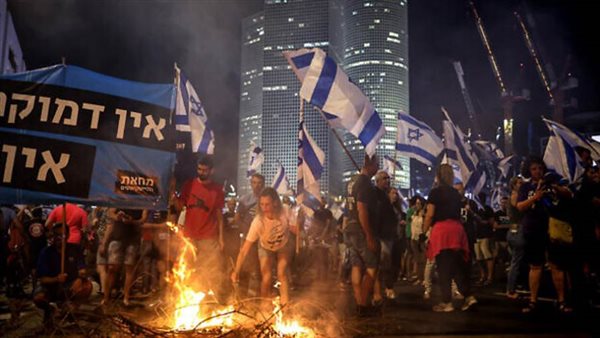 وتجمع المتظاهرون عند شارع "روتشيلد" وسط تل أبيب، واتجهوا إلى ساحة "كابلان"، وذلك ضمن الاحتجاجات المستمرة منذ نحو 8 أشهر ضد خطة التعديلات القضائية.