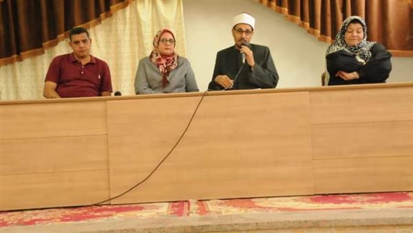 وحاضر الندوة د.عمر عبد الكريم وكيل مديرية الاوقاف، و ا.د / نجوى واعر وكيل الكلية لشؤون خدمة المجتمع وتنمية البيئة.