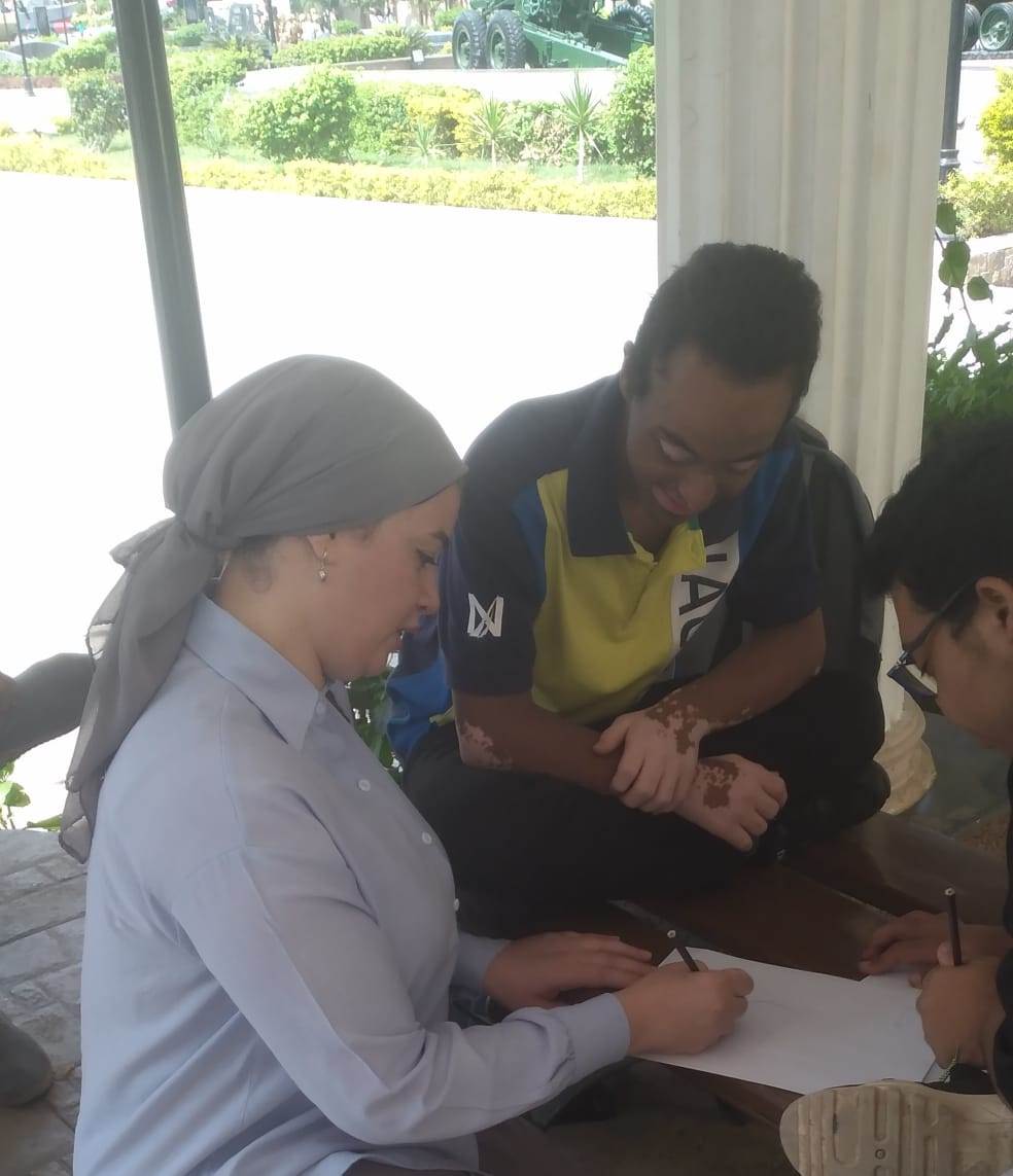 وفي ضوء الزيارة نفذت الفنانة سارة على ورشة فنون تشكيلية لرسم لوحات فنية باستخدام ألوان الخشب على أوراق الكانسون الملونة لتعكس أنامل الأطفال مدى حماسهم وفخرهم ببسالة جنود وطنهم وشجاعتهم، وكذلك تجسيد ما حدث من معارك وبطولات خالدة لاسترداد أرض سيناء العزيزة.