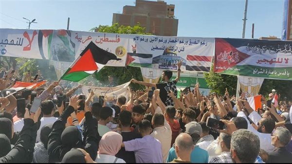 وشدد المتظاهرون على دعمهم الكامل لما تتخذه القيادة المصرية من قرارات لحماية الأمن القومي المصري، ورفض مخطط التهجير إلى سيناء، ودعم صمود الشعب الفلسطيني على أرضه ووقف العدوان الاسرائيلي وتوفير ممرات أمنه للدعم بالمساعدات الغذائية والعلاجية.