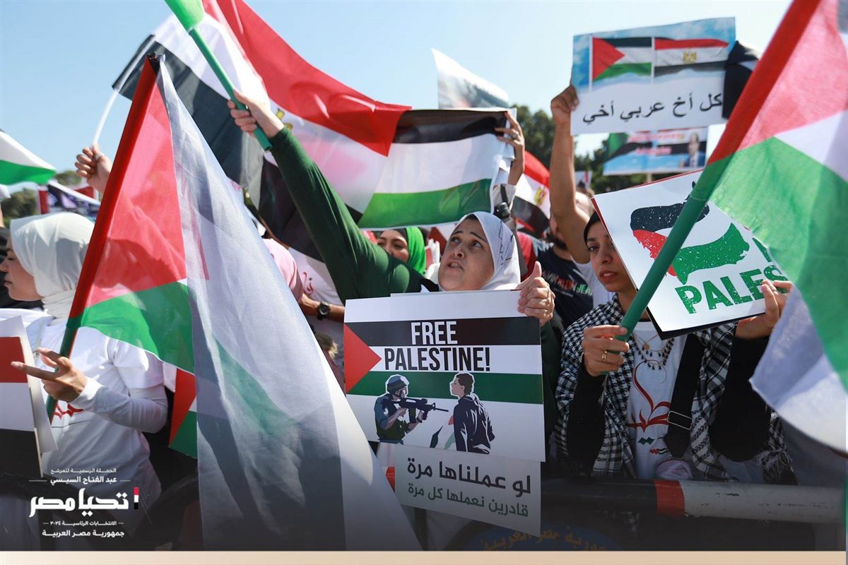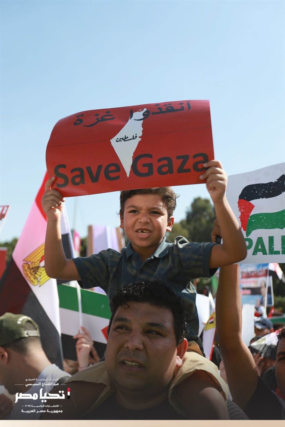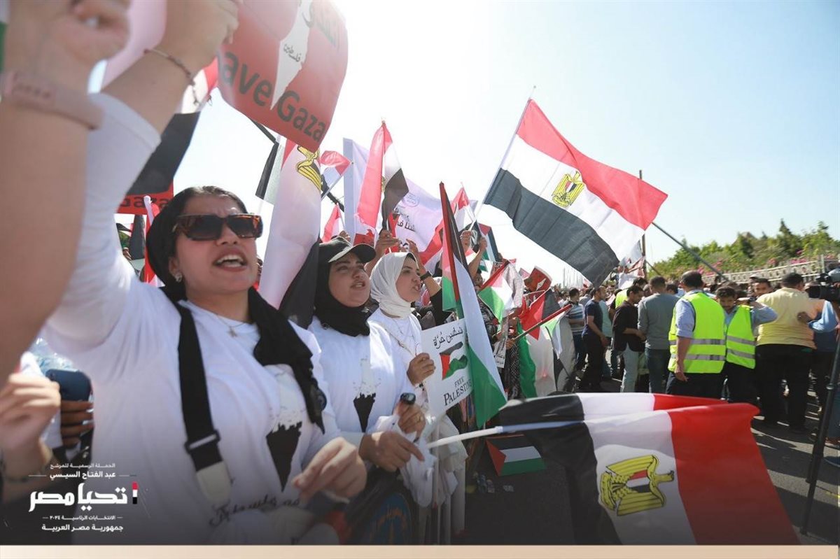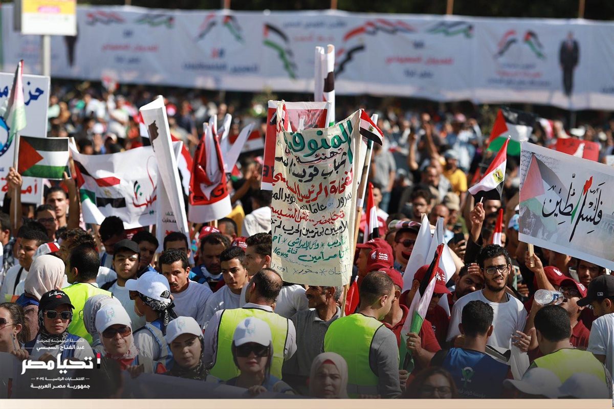 جاء ذلك بمشاركة كل أطياف الشعب المصري صفاً واحداً لدعم وتأييد القيادة السياسية المصرية والرئيس عبد الفتاح السيسي، التي تهدف في المقام الأول إلى الحفاظ على الأمن والسلام بالمنطقة، وحفاظاً على الحقوق المشروعة لشعب فلسطين الشقيق.