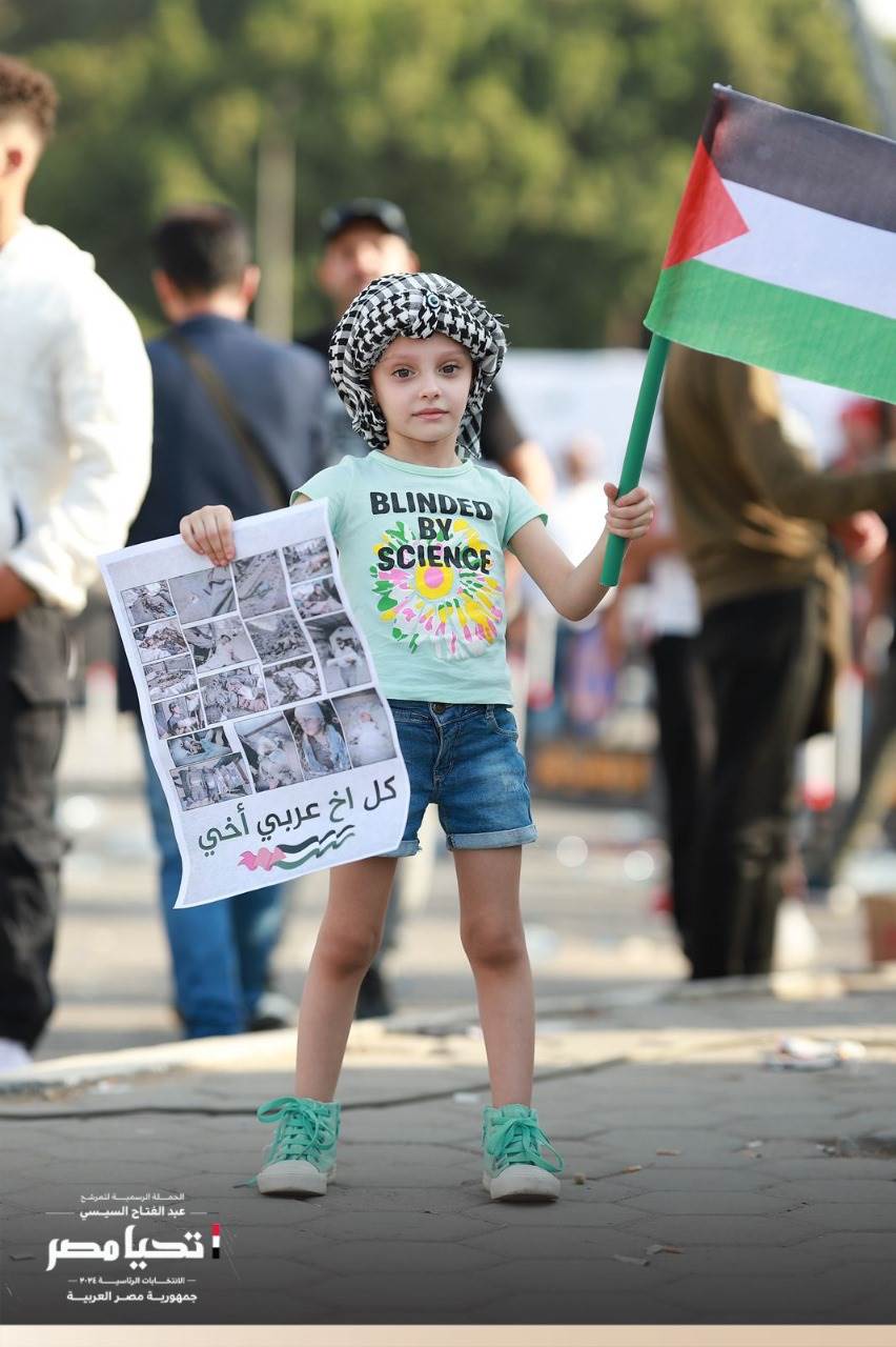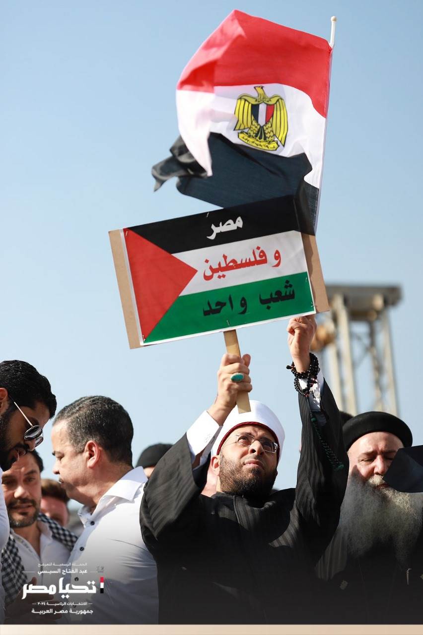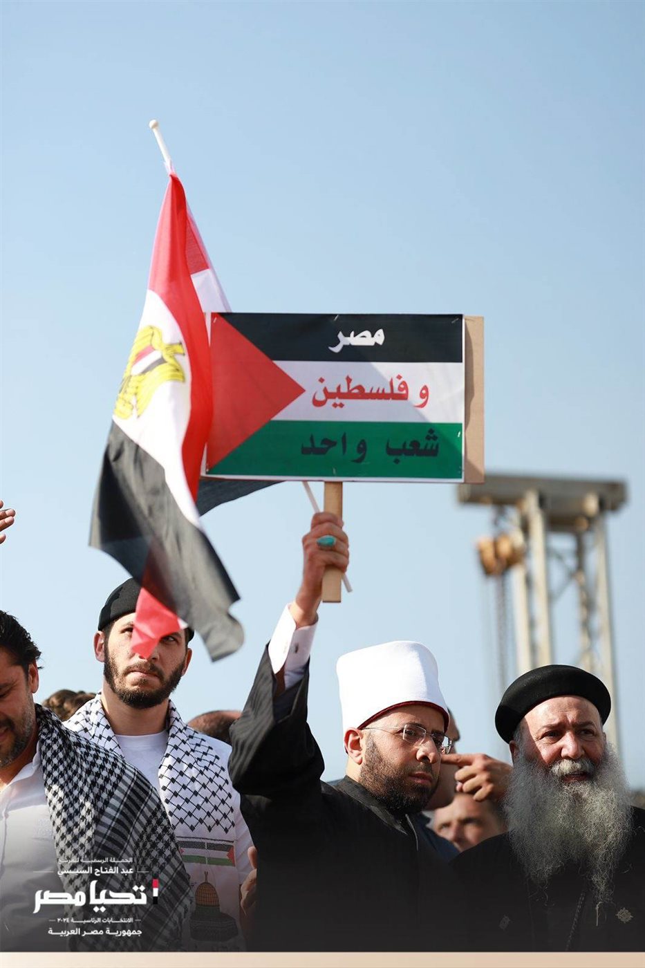 جاء ذلك بمشاركة كل أطياف الشعب المصري صفاً واحداً لدعم وتأييد القيادة السياسية المصرية والرئيس عبد الفتاح السيسي، التي تهدف في المقام الأول إلى الحفاظ على الأمن والسلام بالمنطقة، وحفاظاً على الحقوق المشروعة لشعب فلسطين الشقيق.