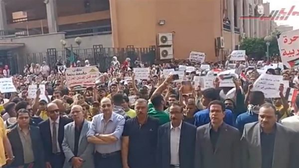 بهتافات تهز الحرم الجامعي.. رئيس جامعة بنها يقود مظاهرة طلابية حاشدة لدعم القضية الفلسطينية