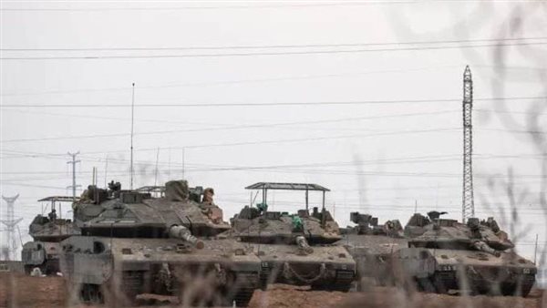 تمتد خطوط الدبابات والمدفعية ذاتية الدفع والمركبات المدرعة وجرافات جيش الكيان الصهيوني عبر الأفق بالقرب من الحدود مع قطاع غزة .