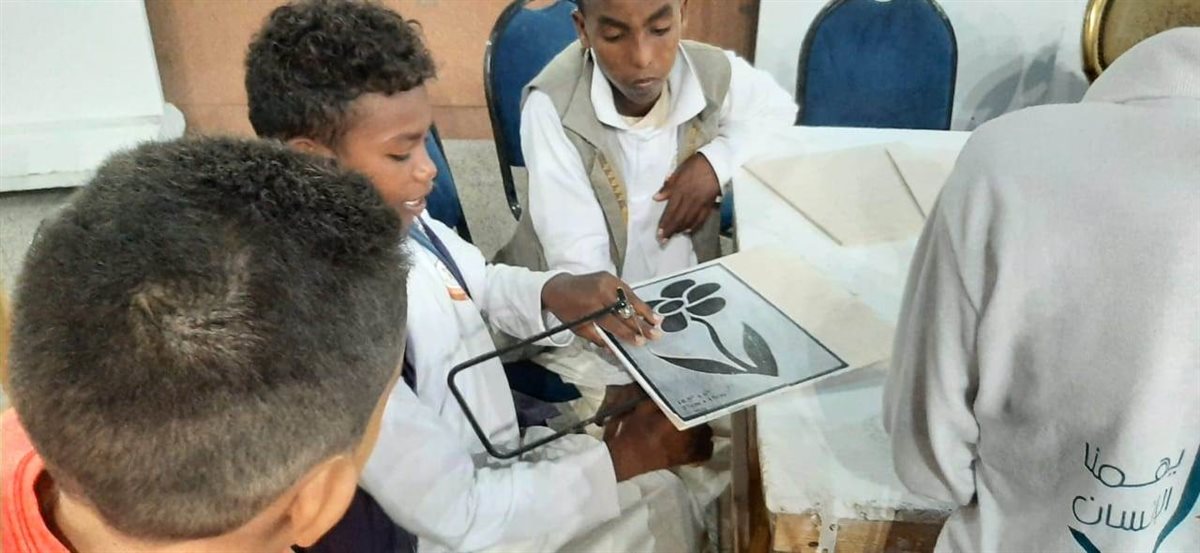 وأوضح "عوض" أن النتاج يختلف من طفل لآخر حسب المخزون المرئي والثقافي لدى كل منهم؛ فأطفال الشلاتين وحلايب تظهر رسوماتهم باللون الأزرق نسبة الي البحر، وأطفال الوادي الجديد يغلب على لوحاتهم اللون الأخضر نسبة إلى الخضرة أكثر.