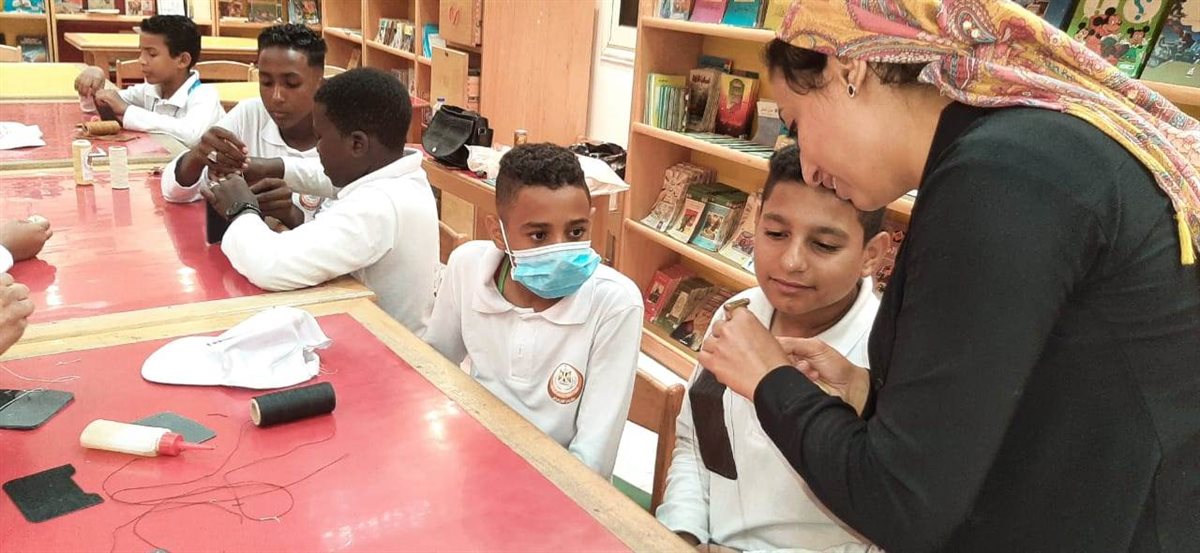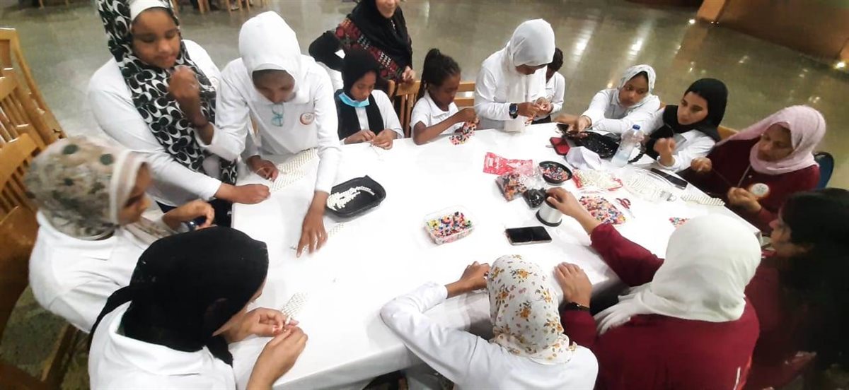 وفي مجال الحرف اليدوية والتراثية قامت المدربة إيمان مجدي بتدريب الأطفال على قص حافظة نقود من الجلد وحياكتها، كما استمرت فعاليات كل من ورشة إعادة التدوير للمدربة نجوى عبد العزيز، وورشة تصميم حقائب بالشبك للمدربة نجلاء شحاته، وورشة المشغولات اليدوية بالخرز للمدربة منى عبد الوهاب، بجانب ورشة الأركيت لحسني إبراهيم، والخيامية لعماد عاشور.