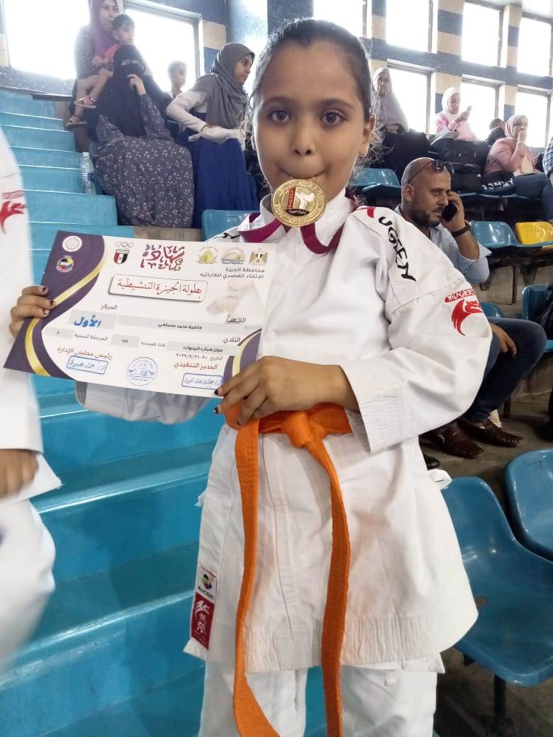 كما انها حققت المركز الاول بالبطولة التنشيطية بمحافظة الجيزة وتتخذ فاطمة محمد بطلة الكاراتيه الاولمبية فريال أشرف صاحبة ذهبية اولمبياد طوكيو 2020 مثل أعلي لها في اللعبة.