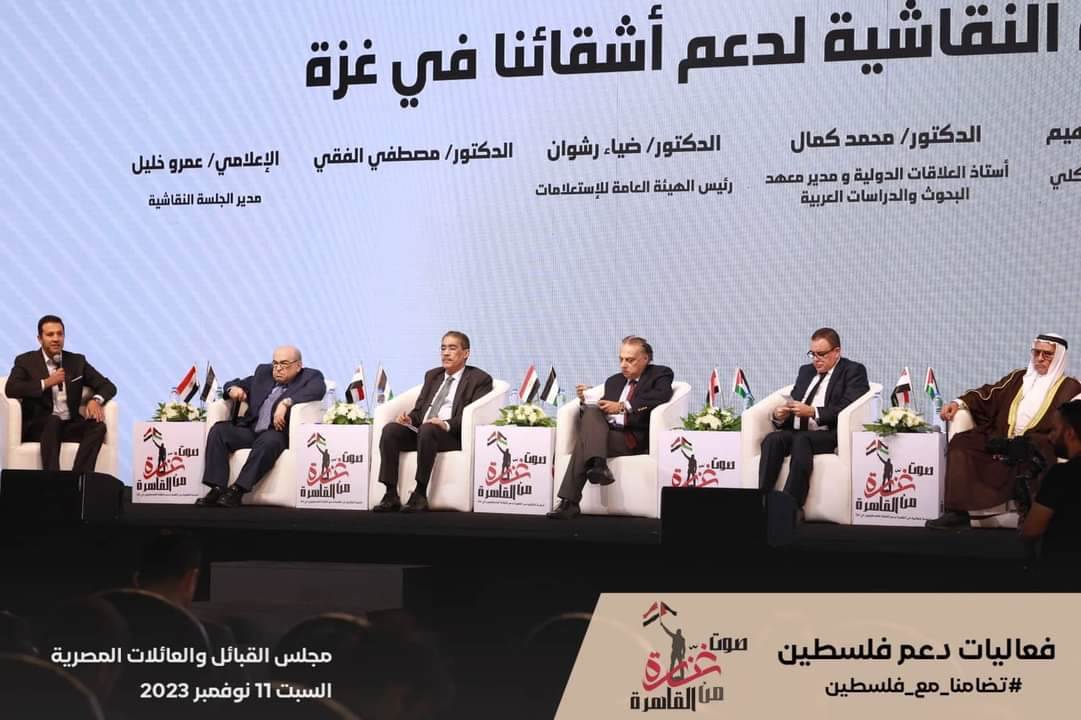 انطلق اليوم ١١ نوفمبر، مؤتمر مجلس القبائل والعائلات المصرية والمنعقد تحت عنوان "صوت غزة من القاهرة"، وذلك لدعم أشقائنا الفلسطينيين في غزة، وذلك بمشاركة أحزاب حماة الوطن ومستقبل الوطن وتنسيقية شباب الأحزاب والسياسيين وعدد من الأحزاب والسياسيين والشخصيات العامة والإعلاميين ورؤساء التحرير وغيرهم من رموز المجتمع.