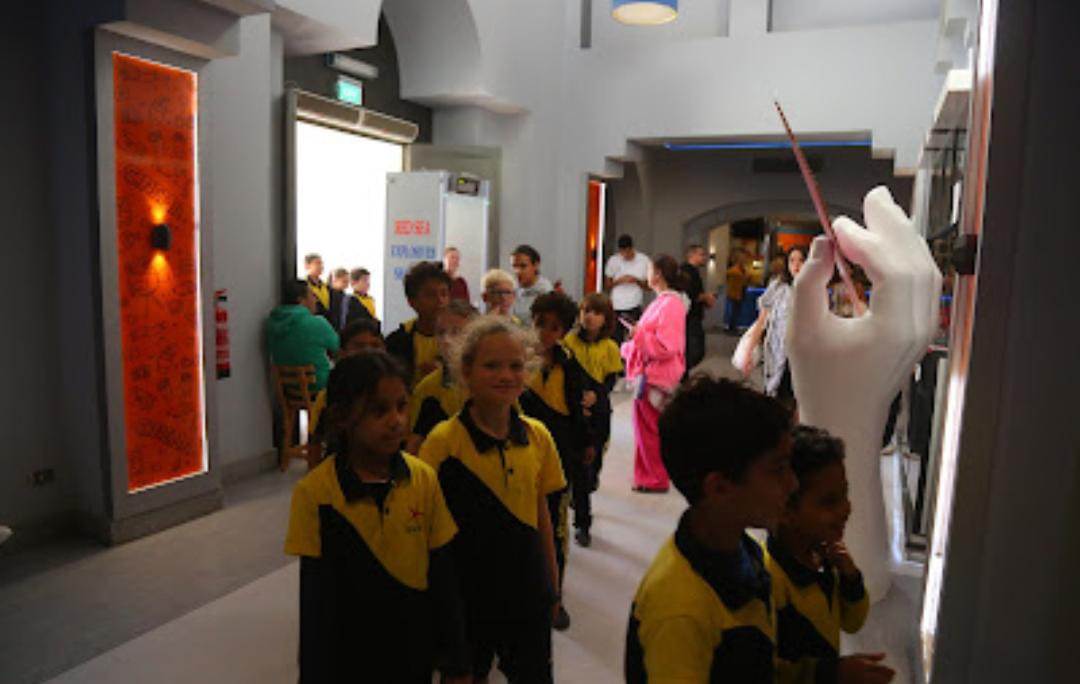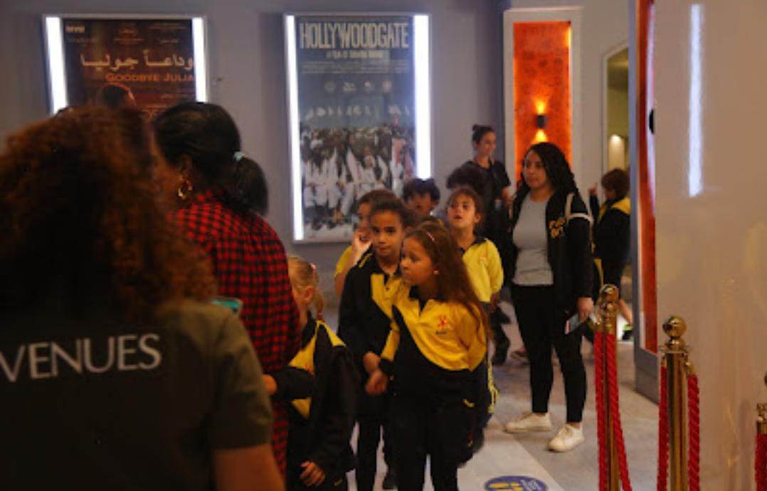 طلاب مدرسة الجونة يحضرون عرض فيلم (كلب سلوقي وفتاة)