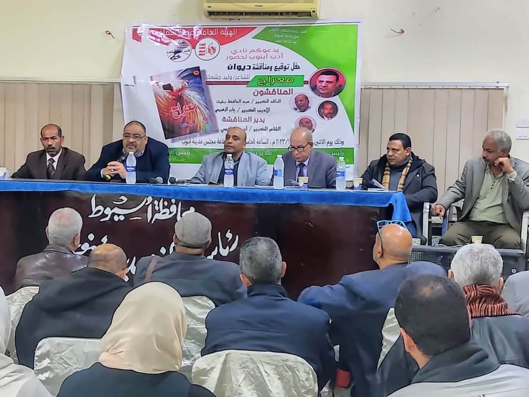 بحضور رئيس الإدارة المركزية لاقليم وسط الصعيد الثقافى يرافقه الشاعر والمترجم محمد شافع مدير إدارة الخدمات الثقافية بالفرع والأديب عبد الحافظ بخيت، والكاتب المسرحي نعيم الاسيوطي عضو اتحاد كتاب مصر والشاعرة سامية ربيع والأديب ايمن رجب طاهر والشاعر احمد الشافعى والشاعر جابر الزهيري والأديب رأفت عزمي رئيس مجلس إدارة نادي الأدب بقصر ثقافة أسيوط ومدحت عبدالحافظ نائباً عن السيد رئيس مجلس مدينة ابنوب والشاعرة إيمان عيسي والشاعرة شاديه حفظى والشاعر صهيب شعبان والشاعر خالد فاروق الابنويي والأديب على عبد الرازق والاعلامي أكرم هلال، ونخبة من ادباء وشعراء الصعيد الثقافى وذلك بمقر مجلس ومدينة ابنوب