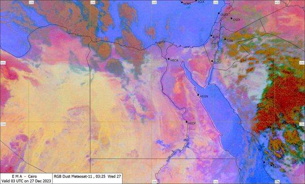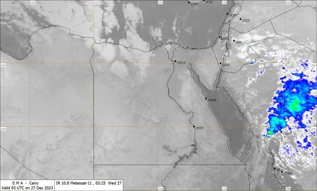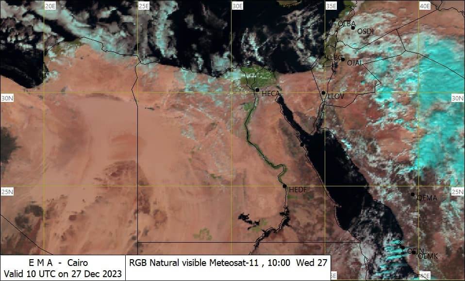 أصدرت الهيئة العامة للأرصاد الجوية، اليوم الأربعاء، آخر صور الأقمار الصناعية والتي تشير إلى استمرار تكاثر السحب المنخفضة والمتوسطة الممطرة على مناطق من السواحل الشمالية الغربية، وشمال الوجه البحري، يصاحبها سقوط أمطار متوسطة الشدة تغزر أحيانًا.