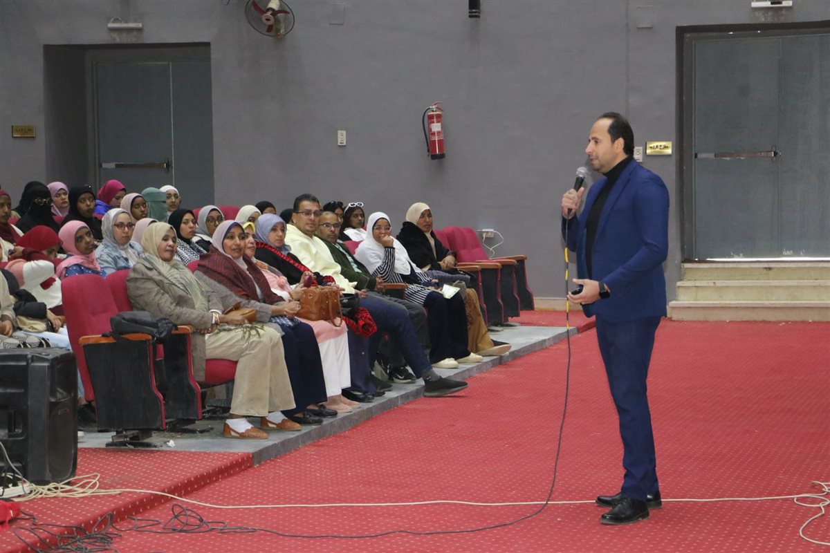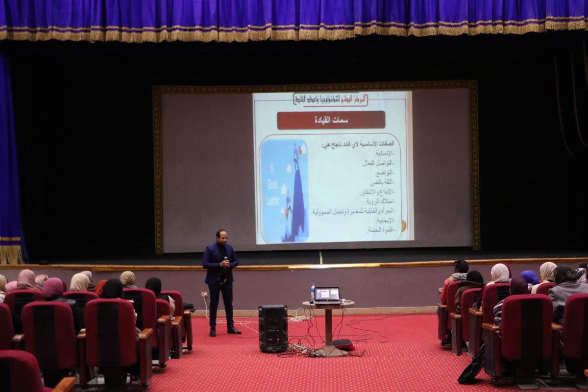 وشهد اليوم انعقاد أولى محاضرات البرنامج التدريبي "إعداد القادة والكوادر النسائية"، تناول خلاله د. على حسن علي -محاضر ومدرب معتمد في إدارة الأعمال والموارد البشرية بعدد من الجامعات الدولية والمصرية، مفهوم القائد والفرق بينه وبين المدير، موضحا أن القائد هو من يقود مجموعة من الأشخاص وإقناعهم بالأفضل والتقدم نحو الإمام.