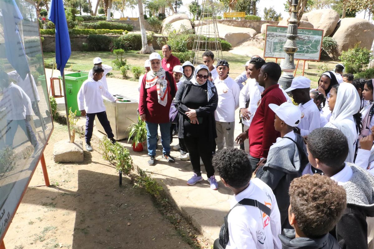 بدأت الفعاليات بجولة بالحديقة تعرف خلالها الأطفال عبر الشروح المقدمة لهم على الحديقة التي تقع على ربوة عالية خضراء على ضفاف النيل عند الطرف الجنوبي لكورنيش مدينة أسوان.