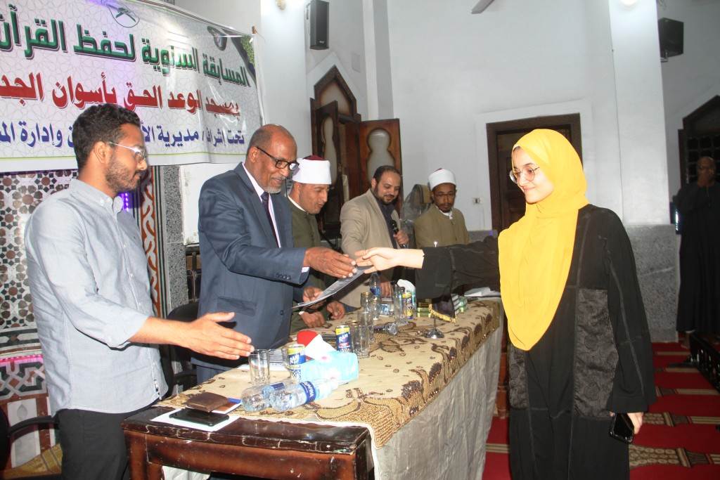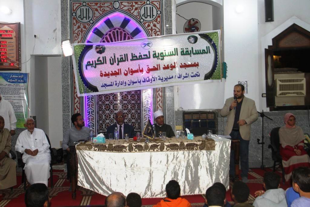 حضر الحفل الذي أقيم بمسجد الوعد الحق بالحي الثاني بمدينة أسوان الجديدة، الدكتور إبراهيم مرسي، عميد كلية الدراسات الإسلامية بنات بجامعة الأزهر فرع أسوان، والشيخ عبد الله عرجون، مدير إدارة المساجد بمديرية الأوقاف بأسوان، والشيخ حسن محمد مصطفى، إمام المسجد، والمهندس أسامة قدرى، المدير التنفيذى بإحدى شركات مدينة أسوان الجديدة، وأهالي وسكان المدينة.