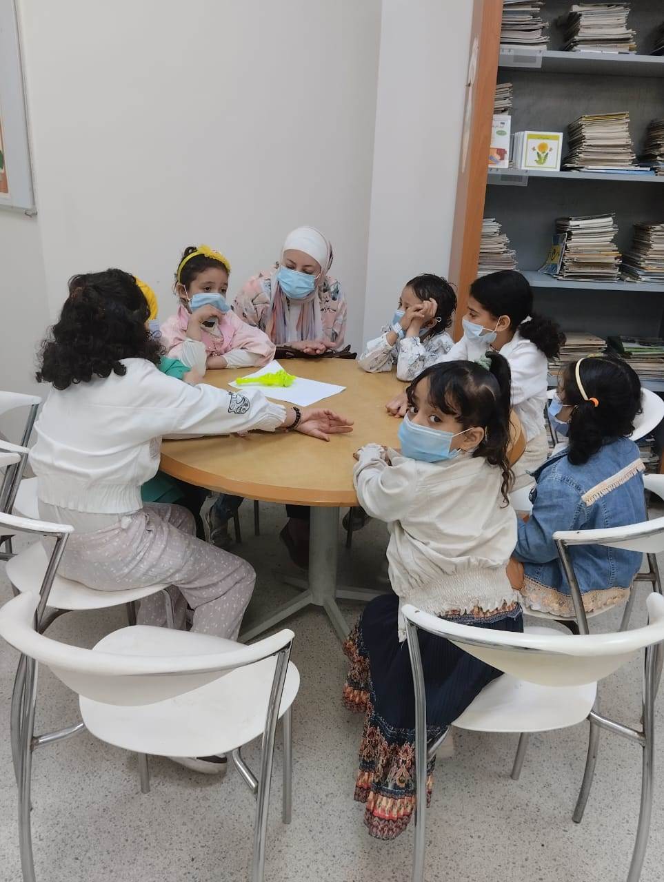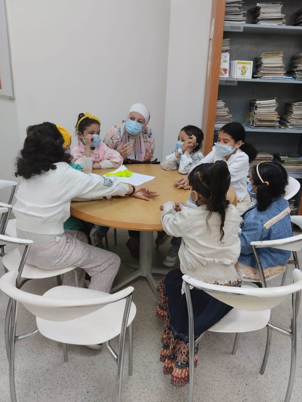 من ناحيتها قامت الفنانة غادة عبد النبي بتدريب عدد من الأطفال على عمل تصميمات ثنائية الأبعاد بالصلصال الملون، بهدف تقوية التآزر العصبي البصري، وتنمية المهارات الحسية لديهم.