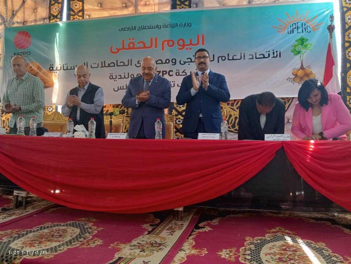 في إطار سعيه الجدي وفي ظل جهوده الخلاقة التي تسهم فى زيادة الإنتاجية وتعظيم الصادرات الزراعية.. أقام الاتحاد العام لمنتجي ومصدري الحاصلات البستانية يوما حقليا بمحافظة المنيا - قرية البرجاية، وذلك بمناسبة حصاد محصول أصناف تقاوي البطاطس المستوردة، والخاصة بالاتحاد وذلك بحضور اللواء أشرف الشرقاوى رئيس مجلس إدارة الاتحاد والمهندس يحيى عبد الغفار حمد مدير عام الاتحاد والدكتور عمر صفوت وكيل وزارة الزراعة بمحافظة المنيا والمهندس محمد نبيل مدير تطوير المنتجات بشركة HZPC الهولندية.