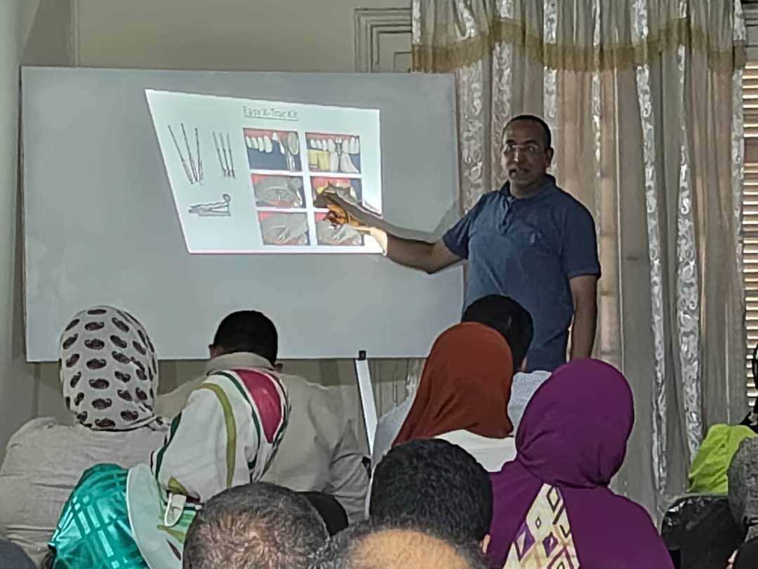 - محاضرة في قاعة المحاضرات بالمديرية ألقاها الدكتور أحمد الشريف- مدرس بقسم جراحة الفم والوجه والتجميل بكلية طب الأسنان جامعة طنطا.