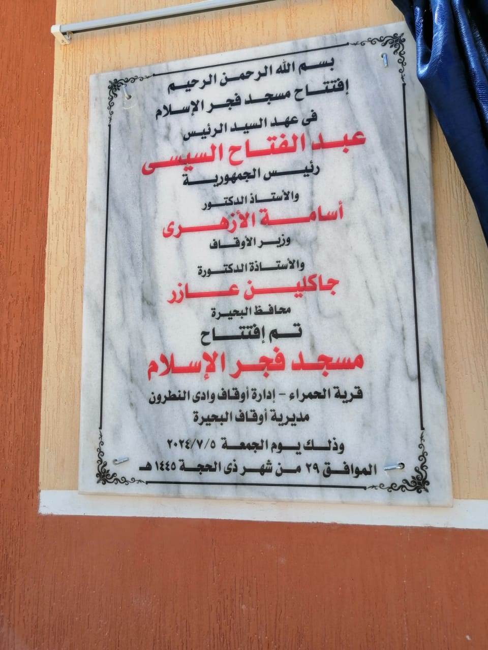 - مسجد فجر الإسلام - قرية الحمراء - وادي النطرون على مساحة 155 م بتكلفة إجمالية 2 مليون جنيه.