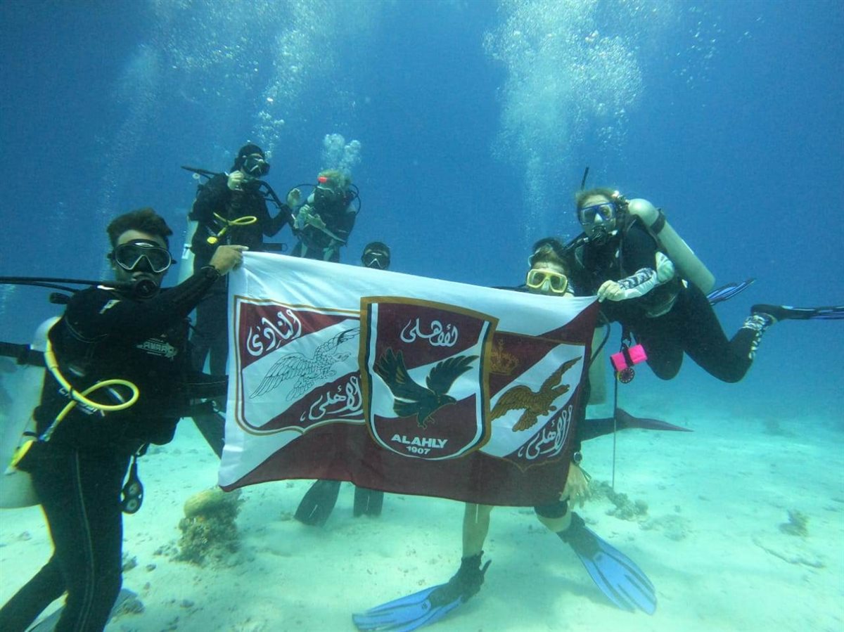 شارك السياح الأجانب من عشاق الرياضة مشجعي النادي الأهلي في احتفال خاص في قاع البحر بعلم الأهلي احتفالاً بفوز النادي الأهلي علي بيراميدز في المباراة التي أقيمت مساء أمس في الدوري المصري الممتاز لكرة القدم وانتهت بفوز الأهلي بثلاثة أهداف مقابل هدفين.