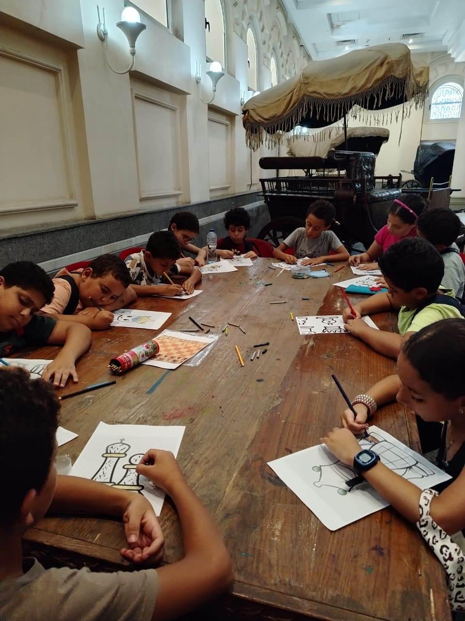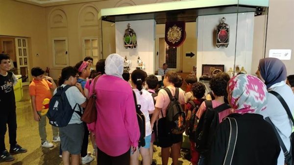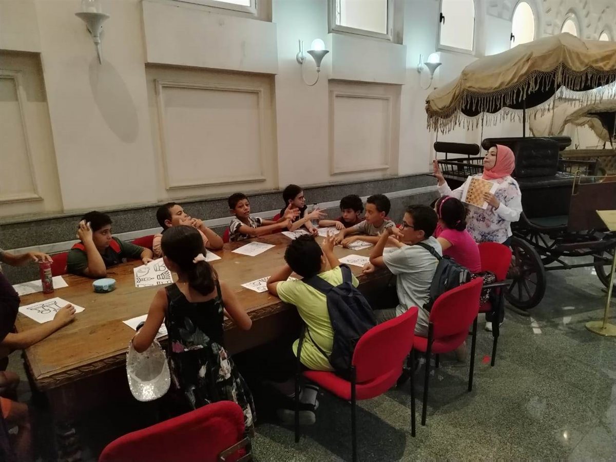بدأت الجولة بتفقد الأطفال لمعروضات المتحف، ويضم المتحف عددا من العربات المختلفة في العصر الملكي وما قبله وعصر محمد علي، وتعرفوا على أنواع المركبات الملكية، بالإضافة لمجموعة من المجوهرات الملكية وبعض الأثاث الخاص بالفترة الخديوية، وصور بعض أفراد أسرة محمد علي.