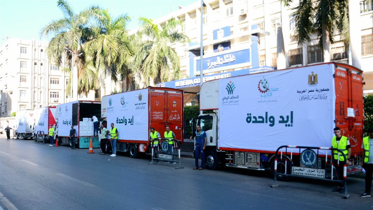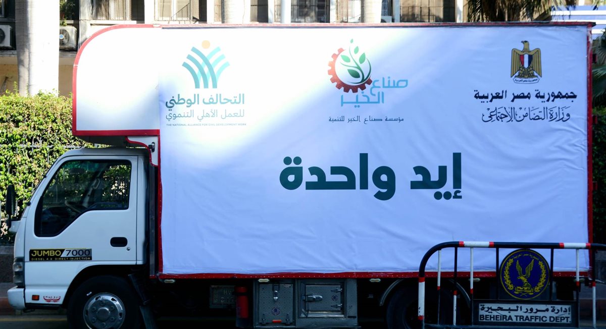 شهدت الدكتورة جاكلين عازر، محافظ البحيرة، انطلاق مبادرة "إيد واحدة" بمحافظة البحيرة، التي تنظمها مؤسسة صناع الخير فى إطار مبادرة التحالف الوطني لدعم الأسر الأولى بالرعاية في المحافظة واصطفت 6 شاحنات أمام ديوان عام المحافظة، محملة بـ30 طنًا من المواد الغذائية، أي ما يعادل 2000 كرتونة تحتوي مختلف المواد الغذائية منها الأرز، السكر، البقوليات، الزيت وبعض المعلبات، والتي تعتبر من المواد الأساسية لكل أسرة مصرية.