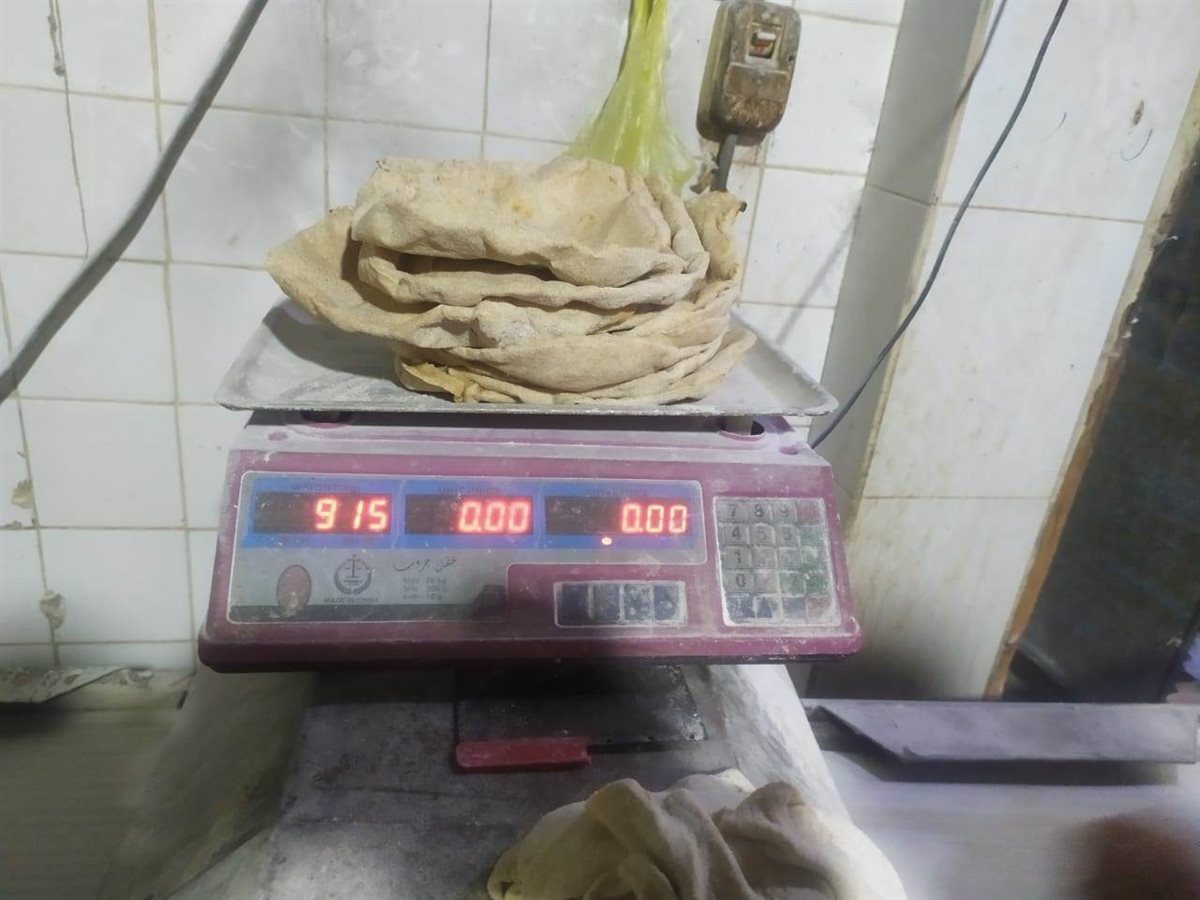 وحررت مديرية التموين والتجارة الداخلية بالغربية، محضر لمخبز بقرية سملا نقص وزن 9 جرامات ومخبز آخر بالقرية نفسها نقص وزن 9 جرامات، ومخبز بقرية دماط عدم وجود لوحة تشغيل ،ومخبز بمنطقة سيجر مدينة طنطا نقص وزن 13 جراما، ومخبز آخر بمنطقة سيجر خبز غير مطابق للمواصفات القانونية، مخبز آخر بمنطقة سيجر نقص وزن 10 جرامات، ومخبز بمنطقة سيجر نقص وزن 12 جراما، ومخبز بمنطقة سيجر عدم وجود لوحة تشغيل ،مخبز بمنطقة سيجر شارع مصنع الكاوتش نقص وزن 27 جراما.