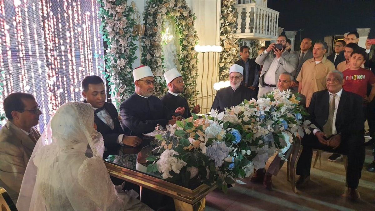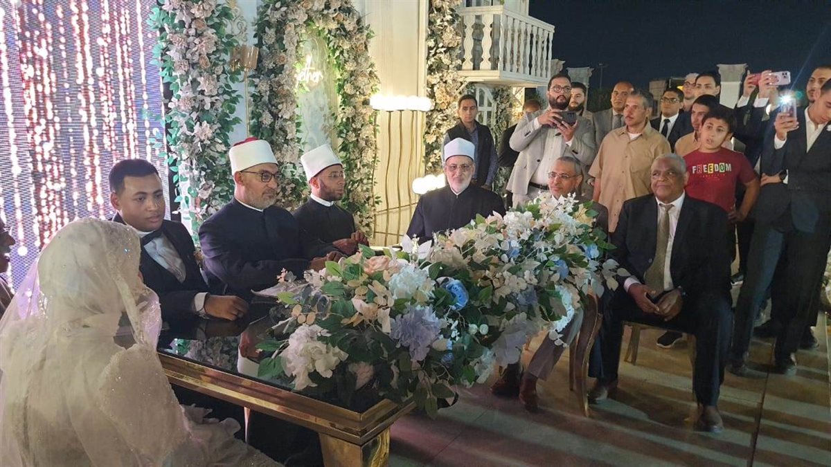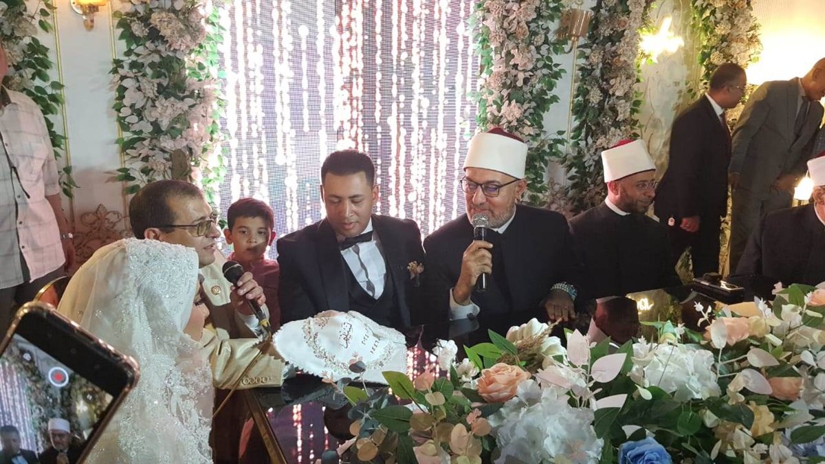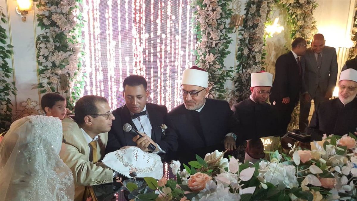 وعقد قران العروسين الدكتور نظير عياد مفتي الجمهورية، وشهد عقد القران والاشهار الدكتور أسامة الأزهري وزير الأوقاف والدكتور عباس شومان رئيس مجلس إدارة المنظمة العالمية لخريجي الأزهر والدكتور عبد المنعم فؤاد المشرف العام على الأنشطة العلمية للرواق الأزهري والدكتور هاني عودة مدير عام الجامع الأزهر والدكتور محمود الصاوي ولفيف من العلماء والأساتذة.