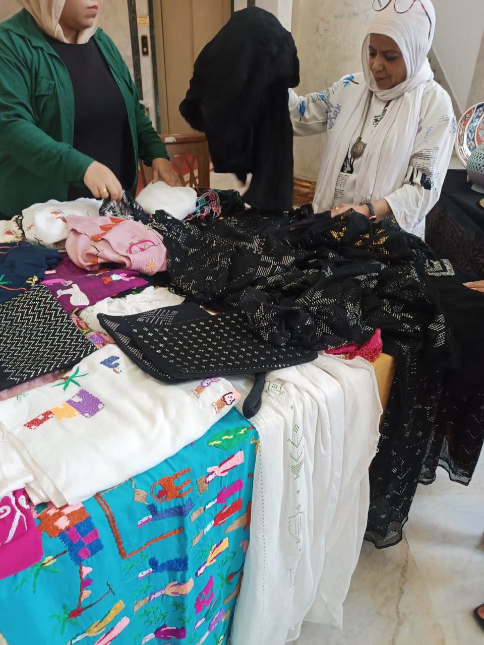 كما تضمن المعرض منتجات حرفية من انتاج مركز الحرف التقليدية بالفسطاط التابع لصندوق التنمية الثقافية: “النحاس – الفضة – الخزف – الخشب القشرة – الصدف”.