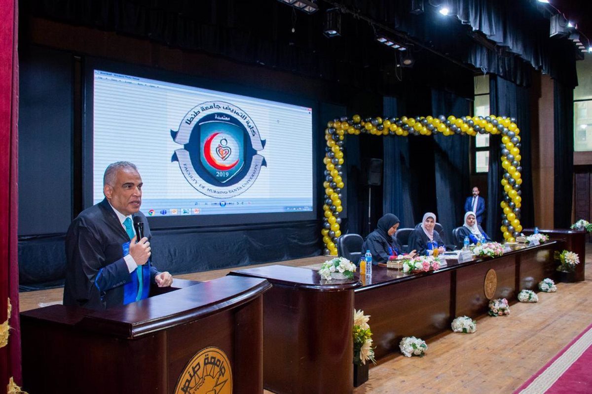 نظمت كلية التمريض جامعة طنطا، احتفالية كبرى لتخريج دفعة 38، بقاعة المؤتمرات بمبنى إدارة الجامعة، بحضور الدكتورة عفاف بصل عميد كلية التمريض جامعة طنطا، والدكتور عصمت جميعي وكيل الكلية لشؤون التعليم والطلاب، والدكتورة أم ابراهيم الساعي وكيل الكلية لشؤون خدمة المجتمع وتنمية البيئة، ونادية أنور نقيبة تمريض الغربية، وعدد من عمداء ووكلاء الكليات، وأعضاء هيئة التدريس بالكلية، وأسر الخريجين.
