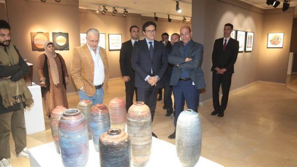 وزير الثقافة يتفقد معرض "ومضات خزفية" في قاعة الباب