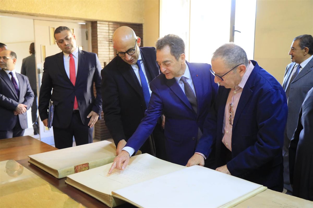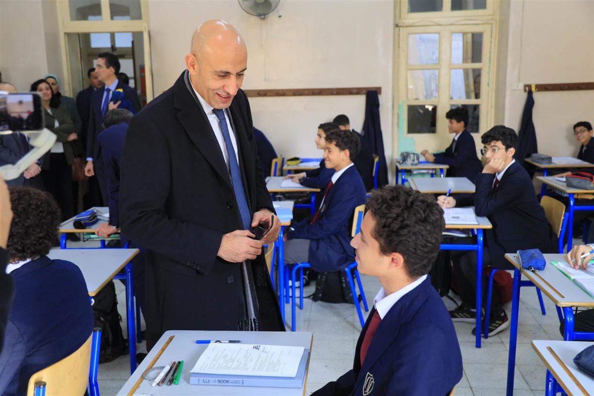 ورافق وزير التربية والتعليم والسفير الفرنسى، خلال زيارتهما السيد دانييل ريجنو ملحق التعاون التربوي بسفارة فرنسا، والسيد فرانك توريس ملحق تعاون اللغة الفرنسية بالمعهد الفرنسي، ومنال جندي مساعدة قطاع التعليم بالمعهد الفرنسي، والأب رومان أمين مدير مدرسة العائلة المقدسة "الجزويت" .