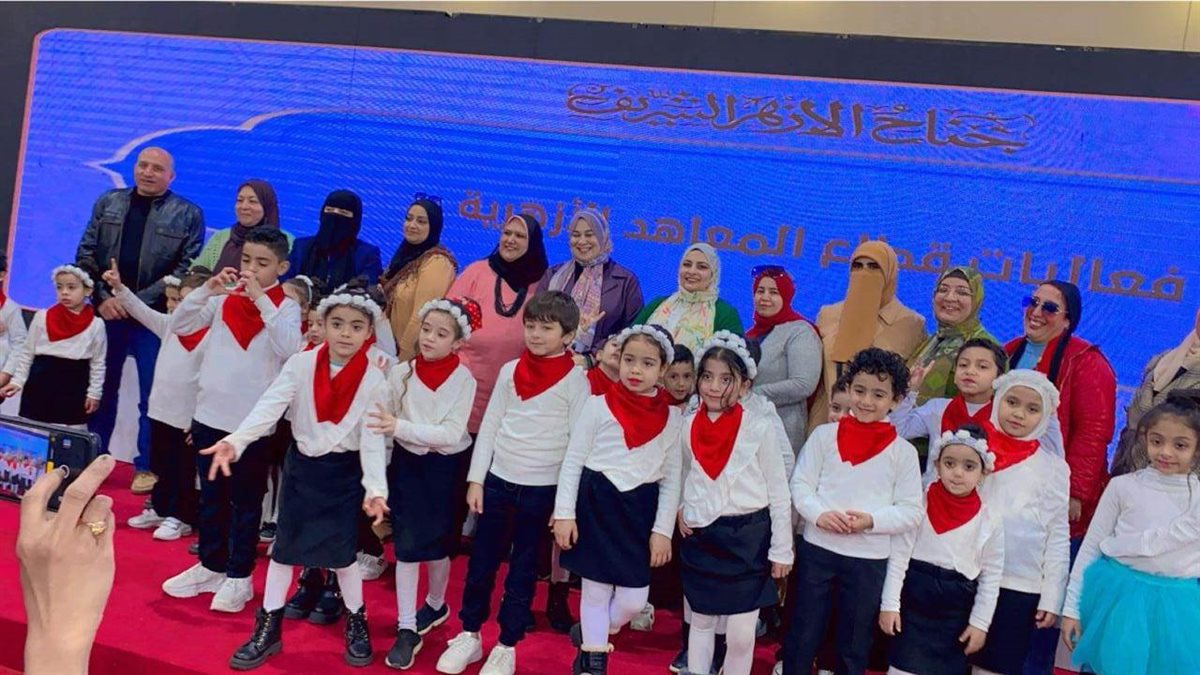 وقام الأطفال بعمل استعراض باللغة العربية واللغة الإنجليزية، بالإضافة للإنشاد الديني بحضور الدكتورة رباب حسين، مدير إدارة رياض الأطفال بالأزهر، والدكتورة زينب طه مديرة المعهد.