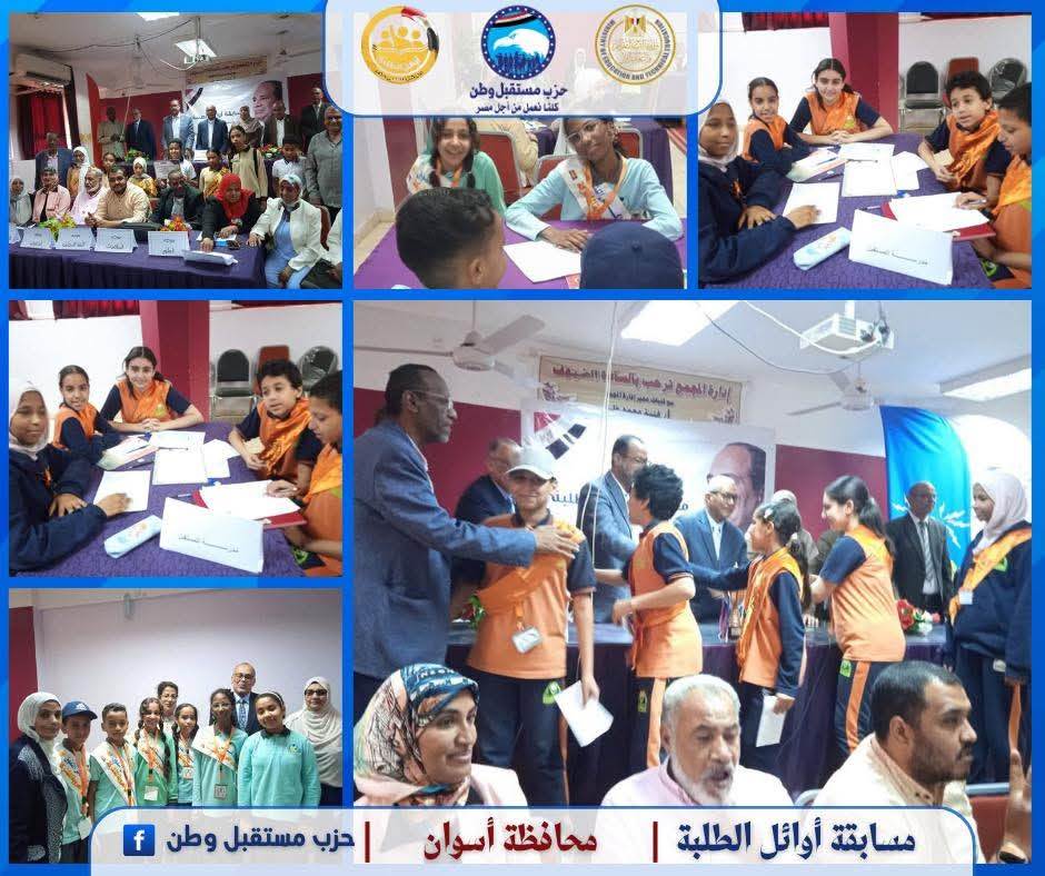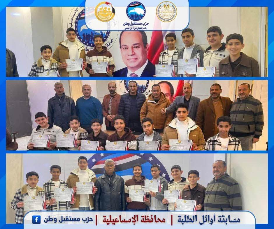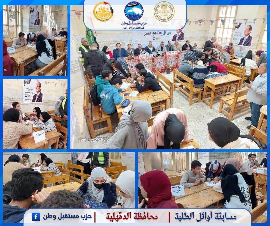 استكمل حزب مستقبل وطن، فعاليات مسابقة أوائل الطلبة في نسختها الرابعة لعام 2024-2025، لليوم الثالث عشر على التوالي، للمرحلتين الابتدائية والإعدادية، في جميع محافظات الجمهورية، بالتعاون مع وزارة التربية والتعليم والتعليم الفني، والتي تنظمها أمانة التعليم والبحث العلمي المركزية.