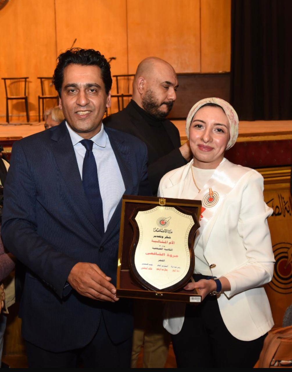 وحصلت الكاتبة الصحفية ابتهال مخلوف نائب رئيس تحرير جريدة روزاليوسف على درع التكريم "أم مثالية" عن مؤسسة روزاليوسف حيث سلمها الدرع البلشي وعبدالمجيد والنجار، وسط أجواء احتفالية.