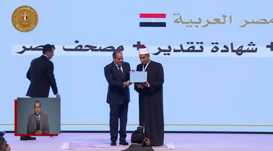 كرّم الرئيس عبد الفتاح السيسي، رئيس الجمهورية - خلال احتفالية وزارة الأوقاف بـ"ليلة القدر"، اليوم- الفائزين في المسابقة العالمية الحادية والثلاثين للقرآن الكريم، في فروع الحفظ والتجويد والتفسير ومعرفة أسباب النزول، وأيضًا لحفظة القرآن الكريم وتجويده للناطقين بغير اللغة العربية، كما تم تكريم حفظة القرآن الكريم من ذوي الهمم.