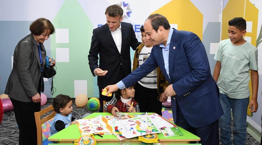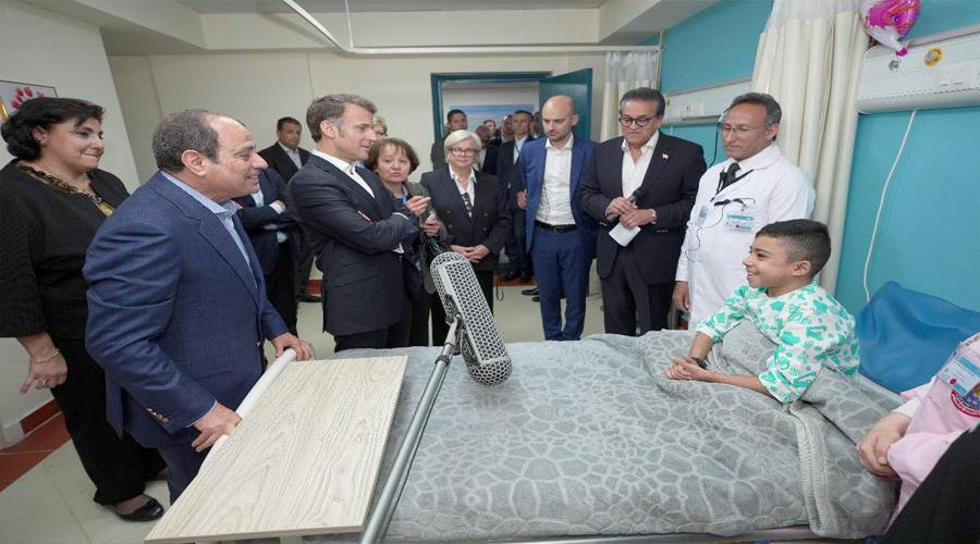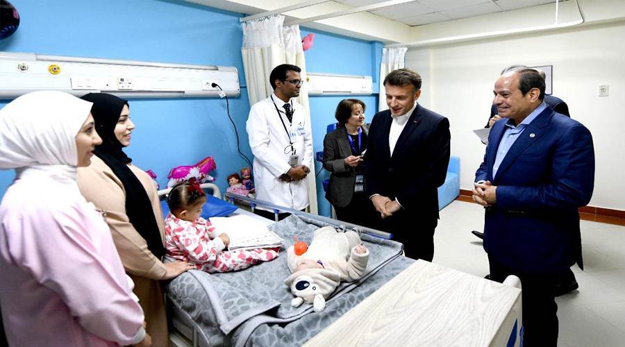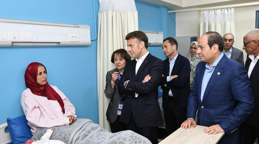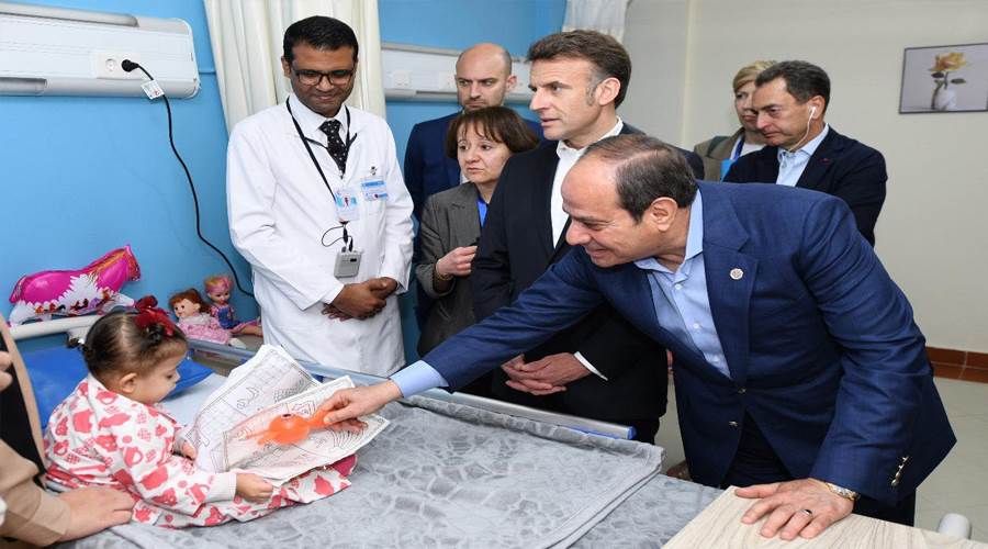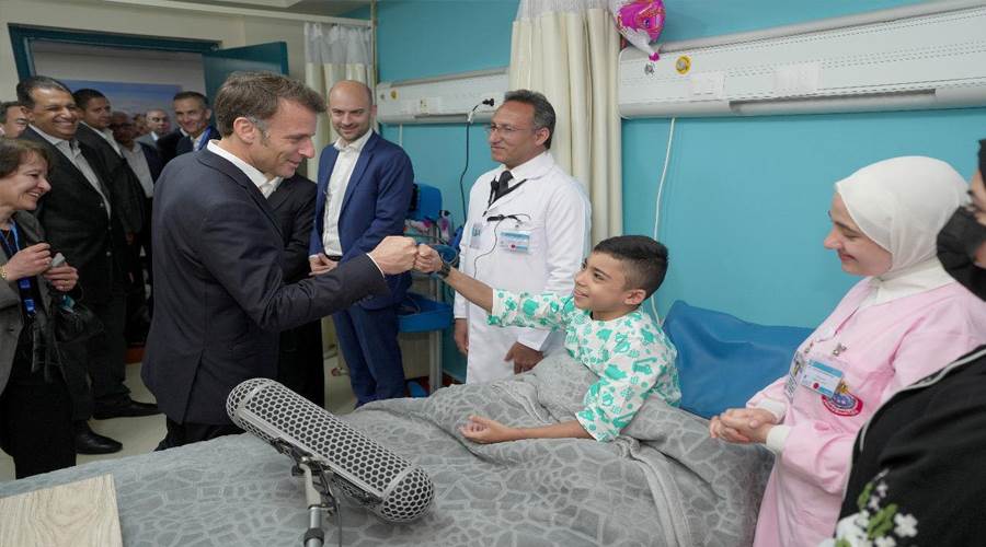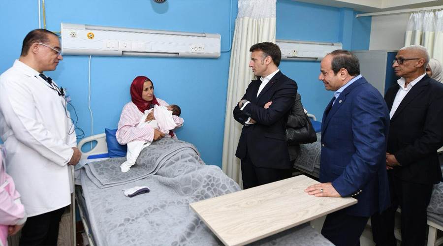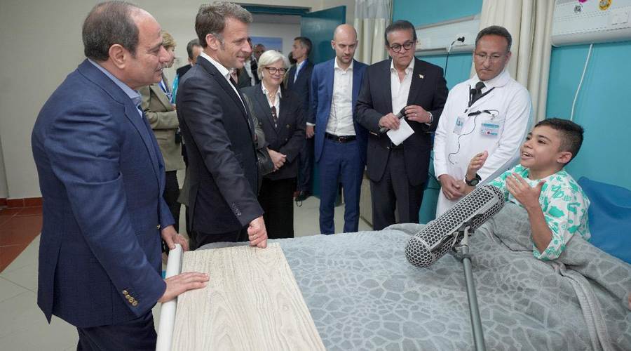 وصرّح السفير محمد الشناوي، المتحدث الرسمي باسم رئاسة الجمهورية، بأن هذه الزيارة تأتي لتأكيد تضامن فرنسا مع الجهود المصرية الكبيرة في استقبال ورعاية المصابين من أبناء الشعب الفلسطيني جراء العدوان الإسرائيلي الغاشم على قطاع غزة، حيث شملت الزيارة تفقد الرئيسين السيسي وماكرون مستشفى العريش ولقائهما بعدد من الجرحى الفلسطينيين، لا سيما من النساء والأطفال، وكذا مركز الخدمات اللوجستية التابع للهلال الأحمر المصري المخصص لتجميع المساعدات الإنسانية المقدمة من مصر وكافة الدول الموجهة إلى قطاع غزة.