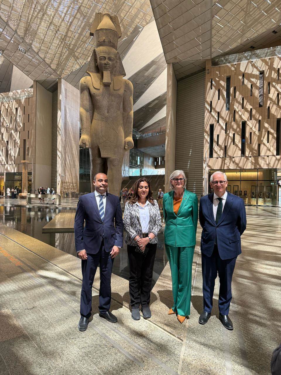 استقبل، اليوم، المتحف المصري الكبير ومنطقة أهرامات الجيزة، السيدة "سام موستين" الحاكم العام لكومنولث استراليا برفقة الدكتورة منال عوض وزير التنمية المحلية، والوفد المرافق لهما، وذلك على هامش زيارتها الرسمية الحالية لمصر.