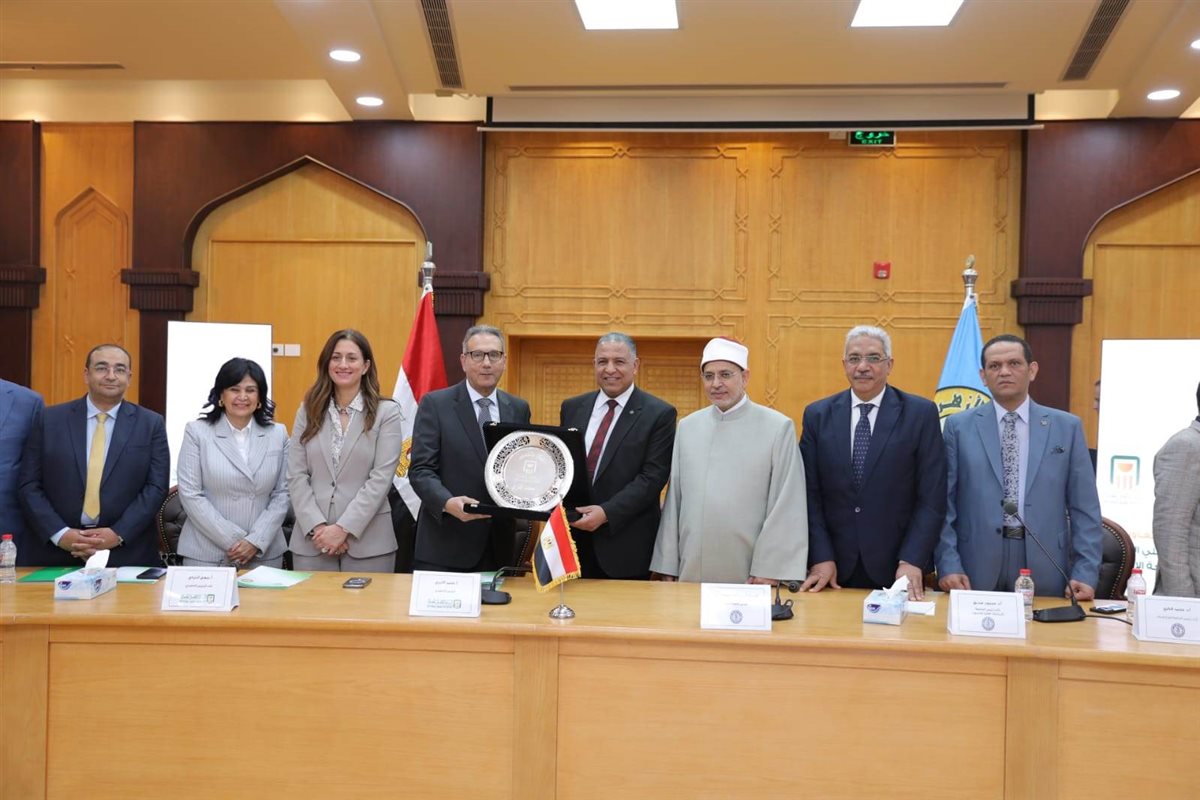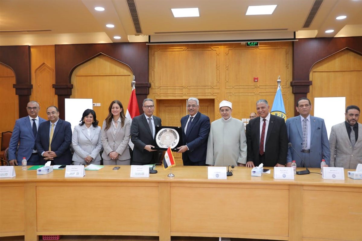وفي ختام اللقاء قامت جامعة الأزهر بتكريم وفد البنك الأهلي المصري وتبادل الدروع.
