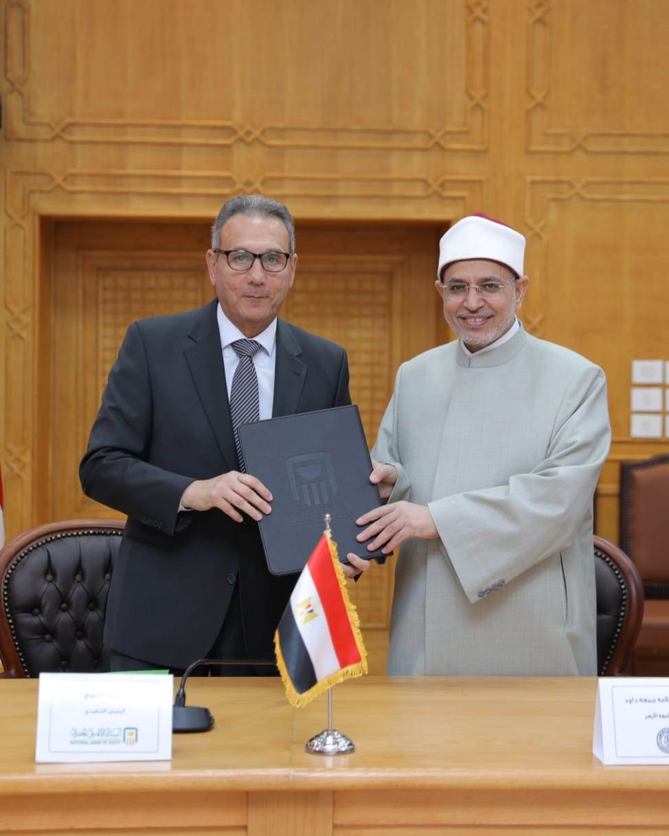انطلاقًا من حرص جامعة الأزهر على التعاون مع جميع مؤسسات الدولة الوطنية، وبرعاية كريمة من فضيلة الإمام الأكبر الدكتور أحمد الطيب، شيخ الأزهر الشريف؛ وقع فضيلة الدكتور سلامة جمعة داود، رئيس الجامعة، بحضور الدكتور محمود صديق، نائب رئيس الجامعة للدراسات العليا والبحوث، والدكتور محمد فكري خضر، نائب رئيس الجامعة لفرع البنات، والدكتور سيد بكري، نائب رئيس الجامعة لشؤون التعليم والطلاب، والدكتور محمد فرج مستشار رئيس الجامعة للتحول الرقمي، والأستاذ محمد عبد الخالق، أمين عام الجامعة؛ بروتوكول تعاون مع البنك الأهلي المصري بحضور الأستاذ محمد الأتربي، الرئيس التنفيذي للبنك الأهلي المصري رئيس اتحاد البنوك، والأستاذة سها التركي، نائب الرئيس التنفيذي للبنك الأهلي المصري، والأستاذة هالة حلمي، رئيس المنتجات والشمول المالي، والأستاذ خالد بسيوني، مدير عام الشمول المالي، والأستاذ محمد جميل، رئيس مجموعة الفروع بالبنك الأهلي المصري.