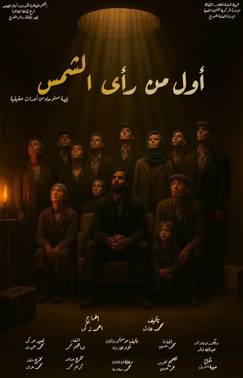 والعرض السادس بعنوان "أول من رأى الشمس"، تجربة نوعية لفرقة قصر ثقافة روض الفرج، تأليف محمد عادل، وإخراج أحمد زكي، وقصته مستوحاة من أحداث حقيقية وقعت في مدينة بلجراد أثناء الحرب الأهلية في يوغسلافيا، حول مجموعة تختبئ في قبو لصناعة الأسلحة دون العلم بانتهاء الحرب.