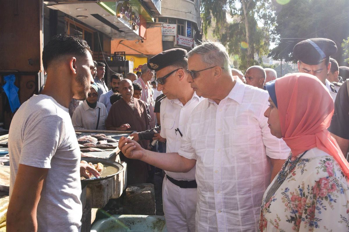 وخلال جولته بسوق باكوس وشارع مصطفى كامل، استفسر المحافظ من البائعين والمواطنين عن أسعار الخضروات والفاكهة والدواجن والأسماك، مؤكدًا على ضرورة الالتزام بالإعلان عن الأسعار بشكل واضح.