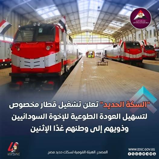 في إطار التعاون المشترك والعلاقات الأخوية الوثيقة بين جمهورية مصر العربية وجمهورية السودان الشقيقة، وفى إطار تنفيذ السكة الحديد لكافة الاجراءات التي تساهم في تيسير العودة الطوعية للأخوة السودانيين إلى السودان الشقيقة.