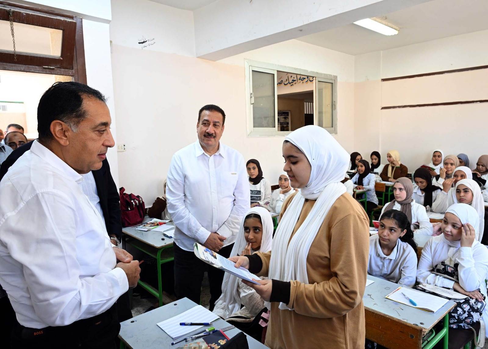 وخلال جولته، تأكد الدكتور مصطفى مدبولي من اكتمال الفصول بالفعل، وأجرى حواراً مع الطالبات وسألهن عن المناهج وإجراءات تسلم الكُتب، حيث أشدن بجودة طباعة المناهج الحالية ومحتواها المتميز، وأكدن أنهن تسلمن الكتب بالفعل ويتبقى لهن الكتب الخاصة بالتقييمات، وخلال تواجده بأحد الفصول طلب من إحدى الطالبات قراءة أحد النصوص باللغة الإنجليزية وترجمته للعربية، وقامت الطالبة بتأدية ذلك بشكل مميز.