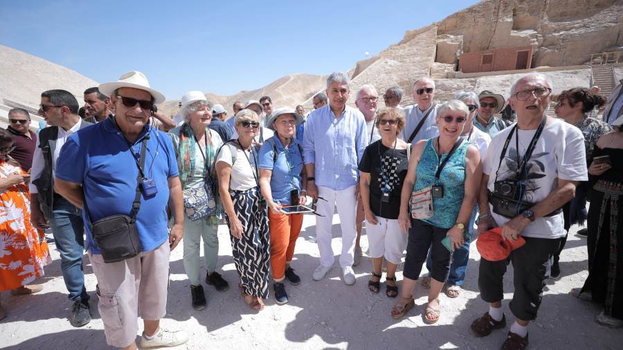 وزير السياحة وسط السائحين بوادى الملوك في الاقصر