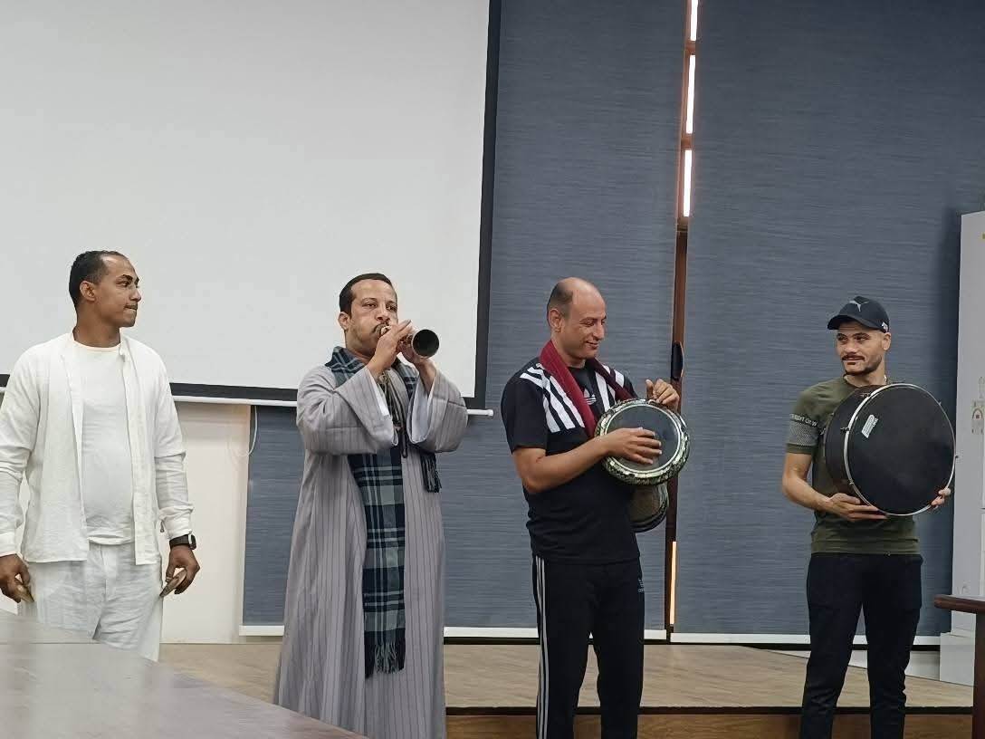 وتضمنت الندوة فقرات فنية لفرق الوادي الجديد، حلايب، والتنورة التراثية، قدمت خلالها عروضا موسيقية مميزة.