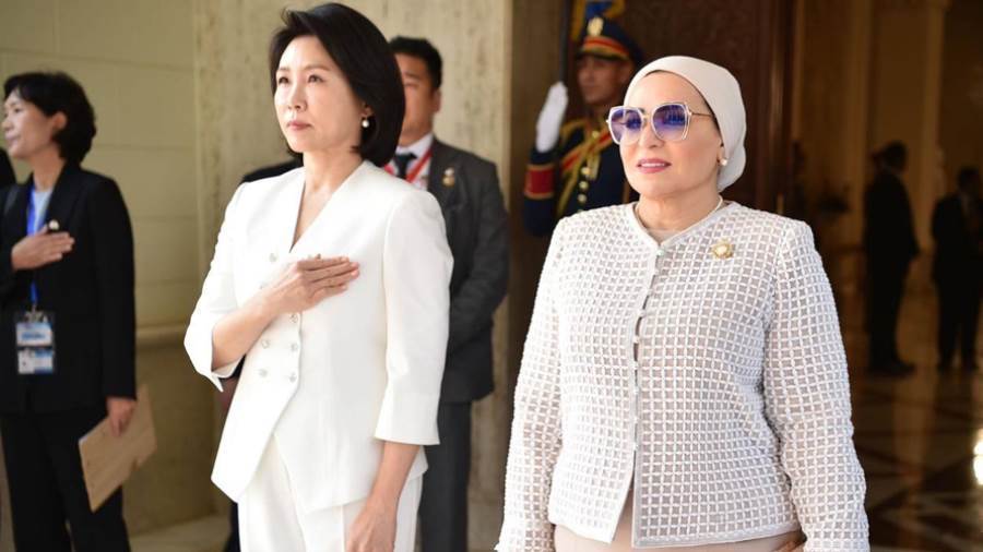 السيدة انتصار السيسى ترحب بقرينة رئيس جمهورية كوريا الجنوبية